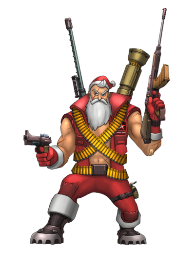 Flamethrower – Santa pull the guns out of his red satchel (Bag)